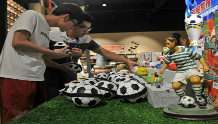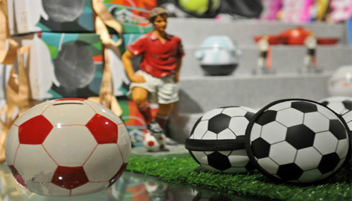 陶瓷“世界杯”配上足球储蓄罐和球员瓷塑,更显活泼生动。