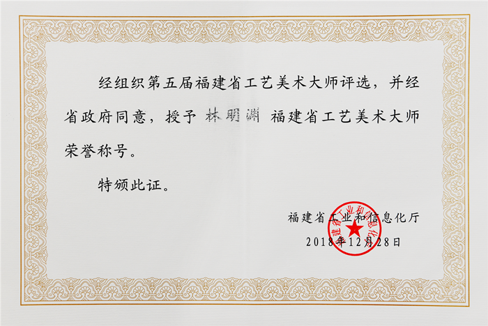 《一代枭雄》荣获泉州市工艺美术创新设计“天工奖”大赛三等奖。