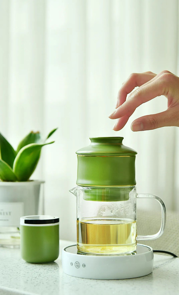 “整个壶身如大肚老者,陶土材质在加热时能释放有益于健康的微元素,养眼又养生。”陈耀忠端起一个电陶壶沏茶,上窄下宽,线条利落干脆,一眼顿生敦厚朴素的眼缘,搭配宛如铃兰花盛开造型的茶杯、如茶花绽放的杯托,待得茶汤入杯,端起轻抿一口细细品,没错,是大自然的味道。