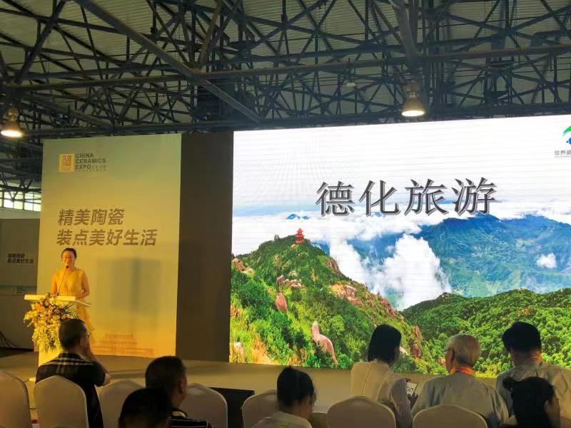 8月5日上午,德化县在展览中心举行了以“你好世界 我是德化”为主题的专场推介会。中国陶瓷工业协会常务副理事长吴越申、副理事长兼秘书长侯文全,清华大学美术学院陶瓷艺术系教授张守智,德化县人民政府副县长张秋英,云南省华宁县人民政府县长张燕华、副县长邓会宾,以及泉州、德化商会代表等出席了推介会。