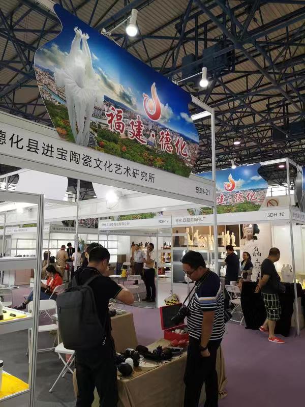 本届展会,德化县组织了31家企业2000余件精品陶瓷参展,展品各具特色,有的注重传承古法,有的着意开拓创新,不仅有收藏类的人物雕塑,还有日用茶具、陈设摆件,以及极富创新意识和时代气息的文创礼品瓷,题材广泛,造型多样,无不展现出创作者灵敏的创作思维、严谨的创作态度和高超的制瓷技艺。同时,德化县还积极组织参与中国陶瓷工业协会第七届“大地奖”评比活动和“向新中国成立七十周年献礼”陶瓷艺术创作与设计大赛。