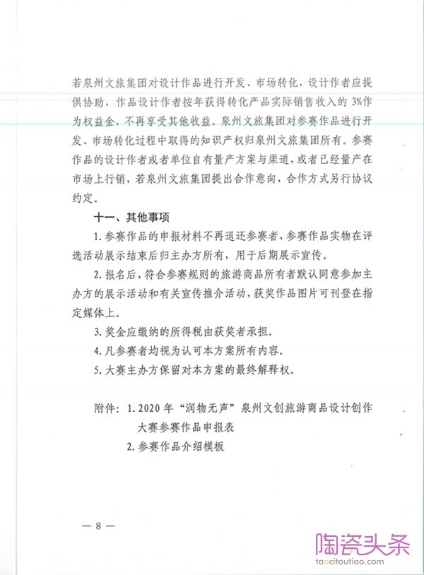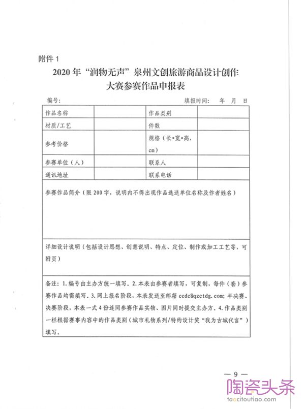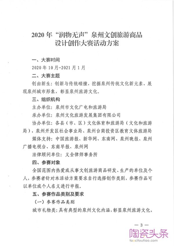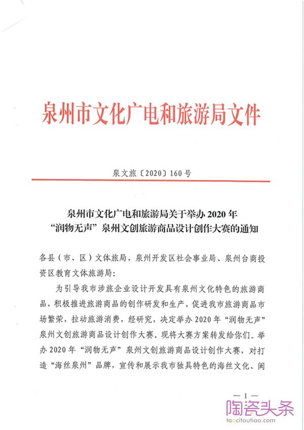 关于举办2020年“润物无声”泉州文创旅游商品设计创作大赛的通知
