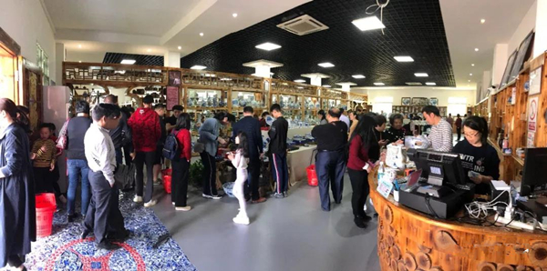 游客在商品区挑选心仪的陶瓷商品