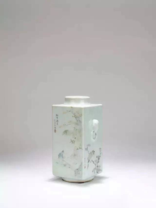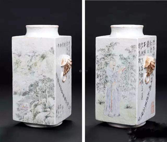清光绪 李蕴辉浅绛彩人物琮式瓶