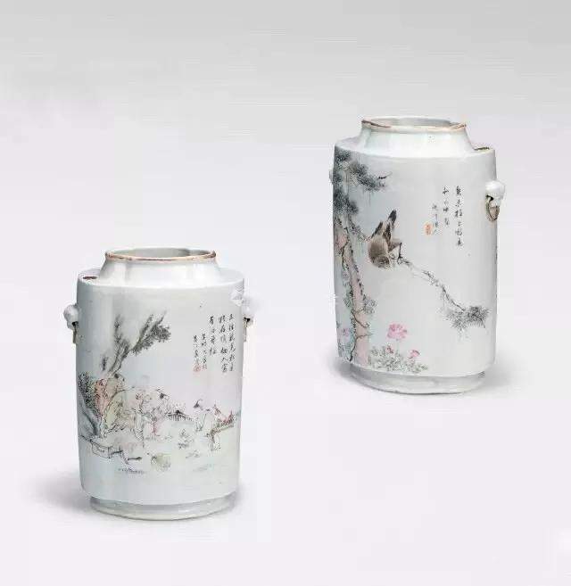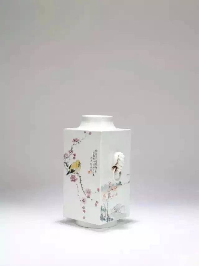 从公元八世纪唐人设立官窑到1911年清朝覆亡,封建社会的官窑制存在了一千多年。这样一个漫长的历史过程中,尤其是在道光朝以前,我们很难在官窑器的制作史上找出一个富于个性的瓷绘大师。从督陶官唐英所建的“唐窑”开始,瓷绘进入到百家争鸣阶段。唐英督造的瓷器不但集过去所有制作之大成,而且制作水平和质量都达到前所未有的高度。如他绘制的诗文笔筒和书写的《朱文公家训》瓷板等,颇具文人气与书卷气,完全脱开了宫廷官窑的碧丽堂皇和缺少文化内涵的窠臼。清王朝到了道光、咸丰朝,国势江河日下,尤其是道光二十年“鸦片战争”以后,朝政和整个社会陷入令人窒息的阴霾中。景德镇御窑厂也一改往日的繁盛,珠山石畔,半弓园里,浅草残枝间都是细弱的虫吟,入夜的窑火也显得虚空而疲倦。在这样的情势下,千年古镇里忽然吹进一股清新的风,接着是小楼细雨,深巷杏花声声。这就是兴起于民间的瓷绘艺术:浅绛彩瓷。这种由瓷绘者独立完成的低温釉上彩瓷深受市场欢迎,也为喜欢文人画创作的画家们找到了一条新的生存之路。同时,这种瓷绘艺术也很快传入濒临倒闭的御窑厂中,在金品卿和王少维的两支笔下,民间艺术得以进一步升华,御窑厂里出现了“瓷本绘画”——浅绛彩瓷正式登上了中国瓷器的最高殿堂。