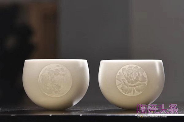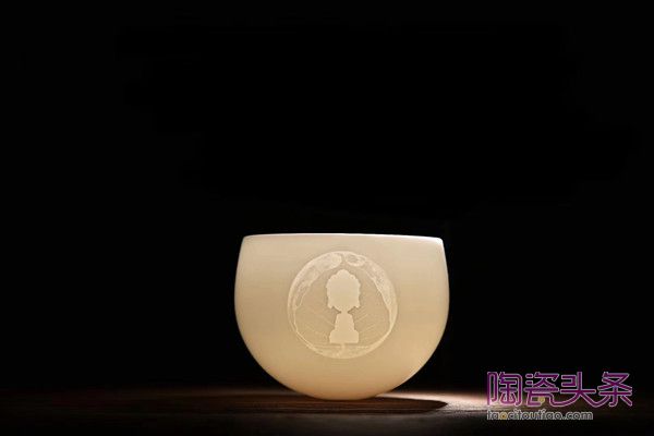 所以,在徐华文的展厅里,你总能发现许多新奇的作品,就连精简风格的玉瓷雕刻杯,也能从器型设计上,雕刻手法上,让你眼前一亮。如作品《花好月圆不倒杯》中,兼具不倒翁构造原理的器型设计,激发使用者儿时童心的同时,又能给人留下深刻的印象。生动逼真的牡丹花和月亮,雕刻点缀杯身,无形中又提升了作品的艺术价值和收藏价值。