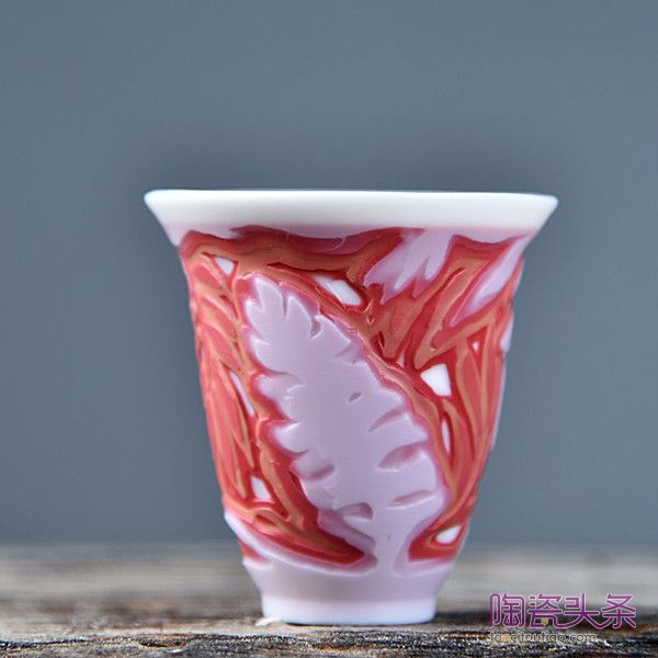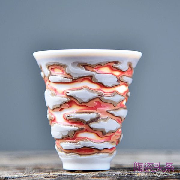 其实,徐华文早前是从事3D陶瓷茶器产品设计,对茶器的造型设计有着丰富的经验,再加上他追求与众不同的艺术理念,使得他在普通的饮茶器皿上,也能玩出新花样,如玉瓷大漆杯、玉瓷绞胎杯、玉瓷雕刻杯等。