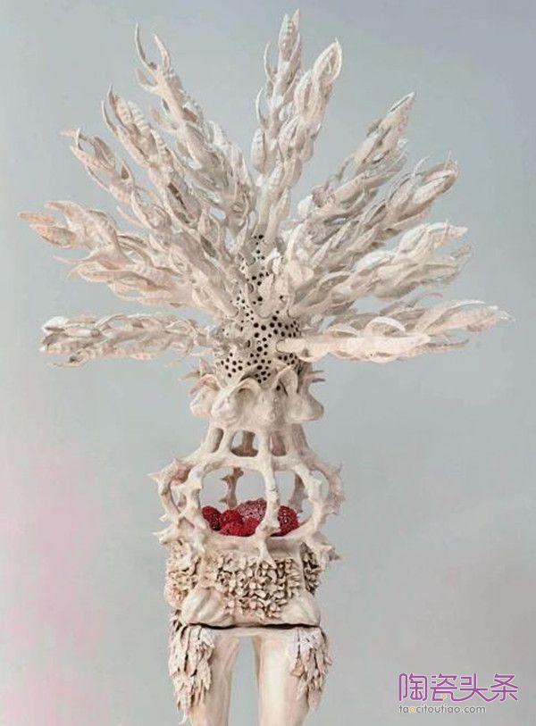 通过自己的画廊与苏献忠展开合作的艺术家丁念祖(Peter Ting)早已痴迷于德化白瓷的艺术张力。在这次的展览中,他也带来了自己创作的德化白瓷作品。丁念祖在香港出生,在伦敦成长,看尽了西方艺术的繁花之后,他又回归东方的乡土,在这一抹纯白中找回自己的文化根基。他在德化白瓷的创作中,体味德化瓷土的细腻,感叹传统技艺的智慧,并且以一个文化上的回归者的身份重新凝视德化白瓷的深厚传统。他的《花钵》系列作品,是带着德化技艺基因,进行当代叙事的作品。作品所自带的一种多文化视野让德化白瓷闪耀出别样的光芒。