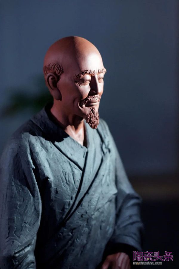 将白瓷雕塑传统技艺与紫砂陶土结合,是近几年来德化陶瓷业寻求突破的新举措之一。陶,虽义为陶器、制陶,然亦有陶然自得、熏陶教化之意,晋陶渊明《时运》有“陶然自乐”诗句,唐杜甫《解闷》亦有“陶冶性灵存底物”诗句。陶人既要“自乐”又要“乐他”,必欲“依道化器”、“器以载道”,实现“道器不二”。从展出的数十件陶塑作品可以看到,张明贵既注重“形而下”之器的塑造,更注重“形而上”之道的挖掘,在“道以成器”与“器以载道”中寻找和谐,在何朝宗圆融线条与紫砂陶土粗犷肌理中寻找平衡,让观者通过具体可感之“器”来感悟蕴藏其中之“道”。