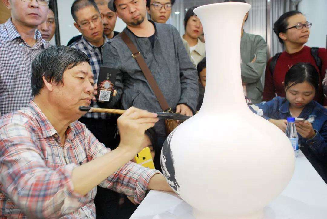 陈老师表示中国画笔墨演变在陶瓷上,是中国画与陶瓷艺术的完美融合,有利于促进南北两地的文化交流,能让更多人领略到水墨瓷韵的风采。