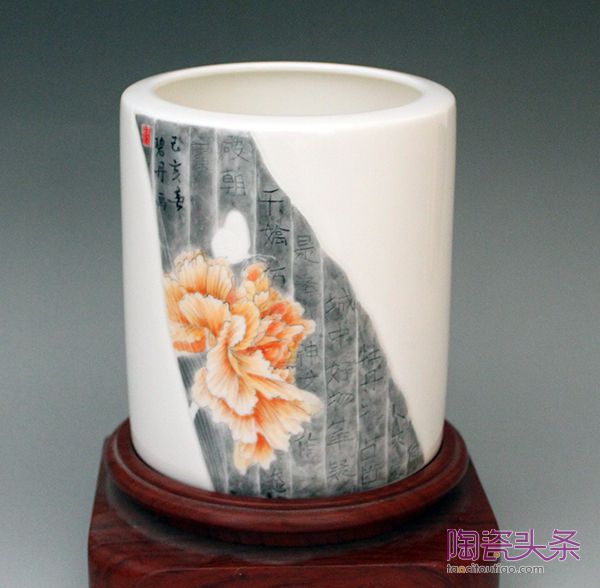 但郑碧丹的瓷绘作品并不只是简单的绘画,雕刻也是她作品中不可或缺的元素。“将雕刻技艺融入绘画中,是我在2014年创作《出水芙蓉》的时候,偶然的一个小尝试,通过雕刻技艺让荷叶浮起来,从而增加作品的立体感与视觉的新鲜感。没想到该作品荣获2014中国工艺美术“百花奖”(莆田)评比“金奖”。也因此影响了我后来瓷绘作品创作的方向。”郑碧丹说。