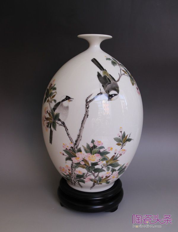 郑碧丹的瓷绘作品主要以花鸟题材为主。雍容华贵的牡丹、玉洁冰清的荷花、迎雪吐艳的梅花、花中飞舞的蝴蝶、正在嬉戏的鹊鸟等一幅幅瓷绘作品,在郑碧丹的妙手丹青下,笔酣墨饱,淡逸劲爽,活灵活现。