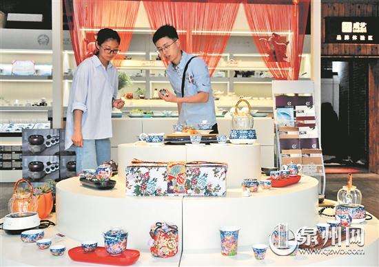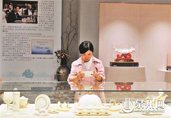 在德化成艺陶瓷有限公司的展厅里,不同款式的茶具整齐地摆放在展柜上,供前来参观的客户们参观、了解。这家成立于1997年的企业,同样专注中高端陶瓷茶具的研发、生产和销售,通过线上线下结合,产品销往全国各地。“虽然我们是小作坊起家,但在发展过程中一直注重产品开发设计和品质把控,产品备受消费者青睐。”该公司行政部负责人陈志强介绍,去年,金砖国家领导人厦门会晤期间,该公司设计赞助的绘有会标的迎宾会议杯得到大家的认可,也为企业带来了源源不断的订单。