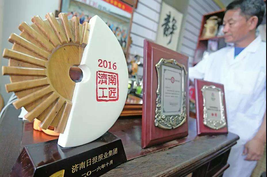 由济南日报报业集团颁发的“济南工匠”奖杯被王春发放在工作室最显眼的位置。