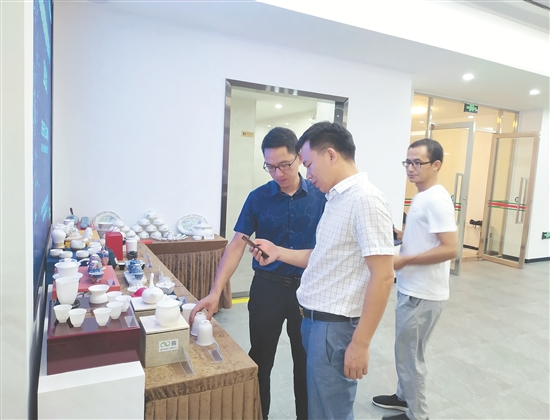 8月22日,参观者在欣赏展出的瓷艺作品。