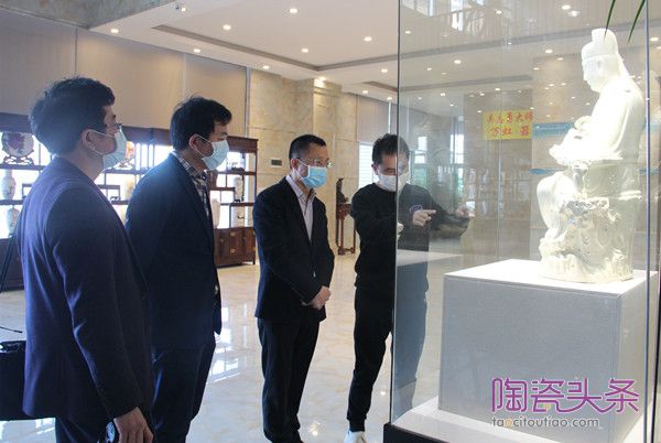 吴志勇与县陶瓷办负责人等交流《三十三态观音》的创作构思