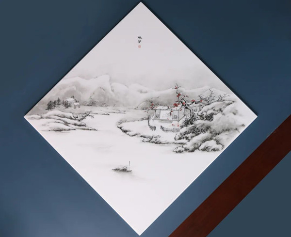 祖父林质彬的瓷画造诣无疑影响了林晓芳的创作心境与胸怀。作为新一代的瓷画传人,林晓芳对自己的创作之路有着更清醒的认识,给出了自己的方向和定位。林晓芳的瓷画作品绘画种类丰富多样,有釉上新彩、古彩,釉下五彩、青花、高温颜色釉等。她惯以写意或兼工带写的技法绘画作品,作品风格简练洒脱、意境深远,画面布局舒适得当,并且注重留白式绘画技法。