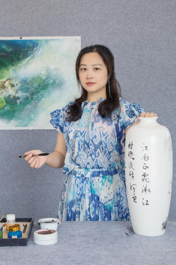 林晓芳的作品表达出了其独特的境界追求,尤为可贵之处在于她的画外功夫。她常年手不释卷,旁涉诗词、书法、篆刻,对中国传统文化与当代精神都有独到的见解。在作品创作中,她也将书画篆刻的技法运用到陶瓷上,做到了多种艺术形式的“跨界融合”。
