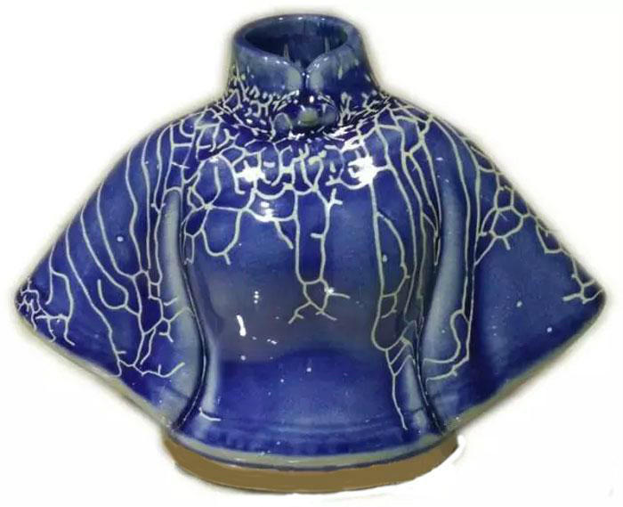 中式服将小花器,窑变釉色加上钧窑的蚯蚓走泥纹,更加衬托鲜花的娇艳。