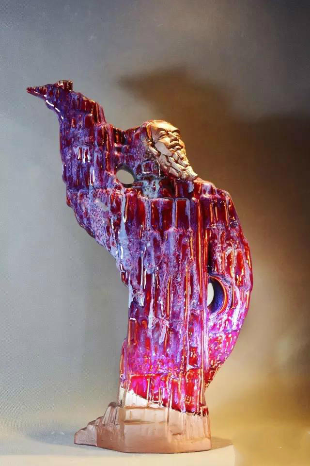 贺文奇不拘泥于传统钧瓷的制作方法和模式,时时在传统的基础上创新。在长期的钧瓷创作中,他创造性地将现代陶艺理念引入当代中国钧窑艺术,创作出了许多极具时代色彩和艺术创造力的钧瓷。