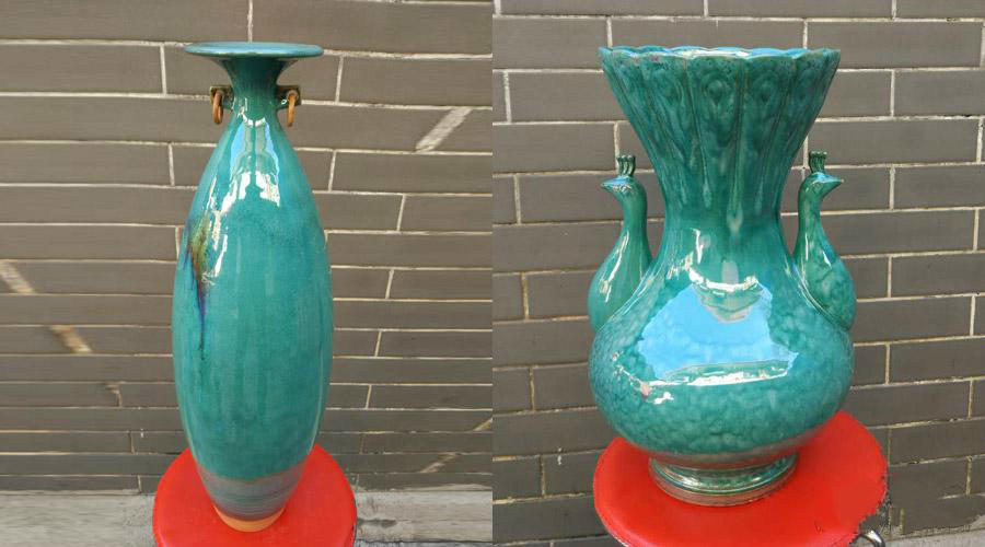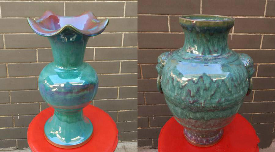 东方丽人(左)和孔雀尊(右)-钧宝坊孙新要柴烧钧瓷作品
