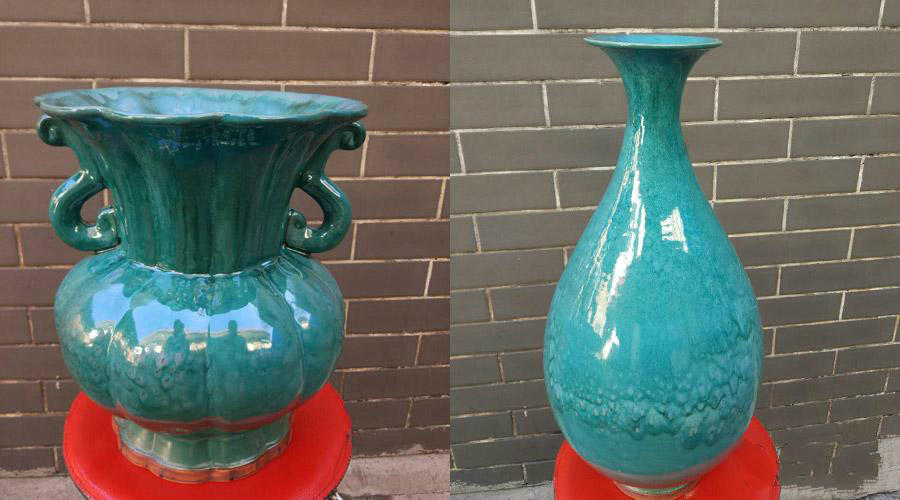 竹节如意瓶(左)和天球瓶(右)-钧宝坊孙新要柴烧钧瓷作品