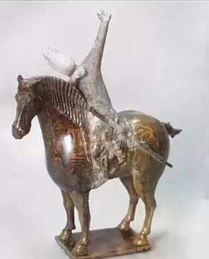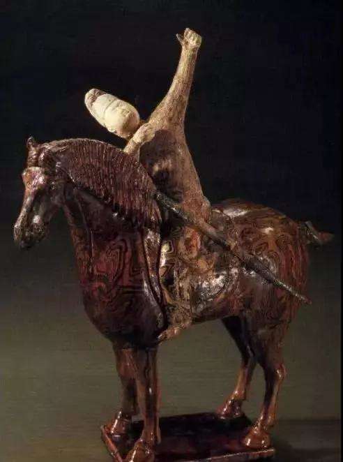 唐绞胎骑马射猎俑 高36.2 長30厘米 陕西历史博物馆