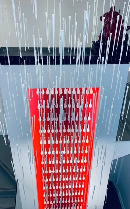 汤匙墙设计理念:汤匙又名调羹,风调⾬顺墙整体由208根汤匙组成,每把汤匙看上去就像一滴雨滴,意为风调雨顺、顺顺美美的美好蕴意。