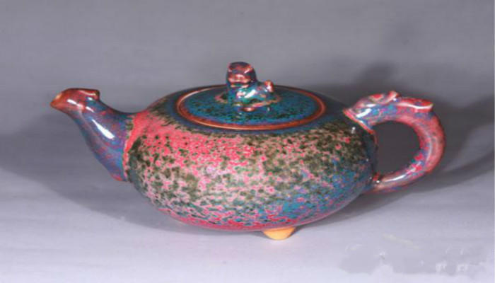 钧瓷色泽,红若胭脂朱砂者为最,青若葱翠紫若墨者次之。这些绚烂奇妙的色彩在烧制中自然形成,即使同施一种釉,一经烧成即五光十色,变幻无穷。红里透紫、紫中藏青、青中寓白、白中泛红,五彩渗化,相映生辉。在不同光线、不同角度下观赏各有情趣,耐人寻味,并辄有新意。