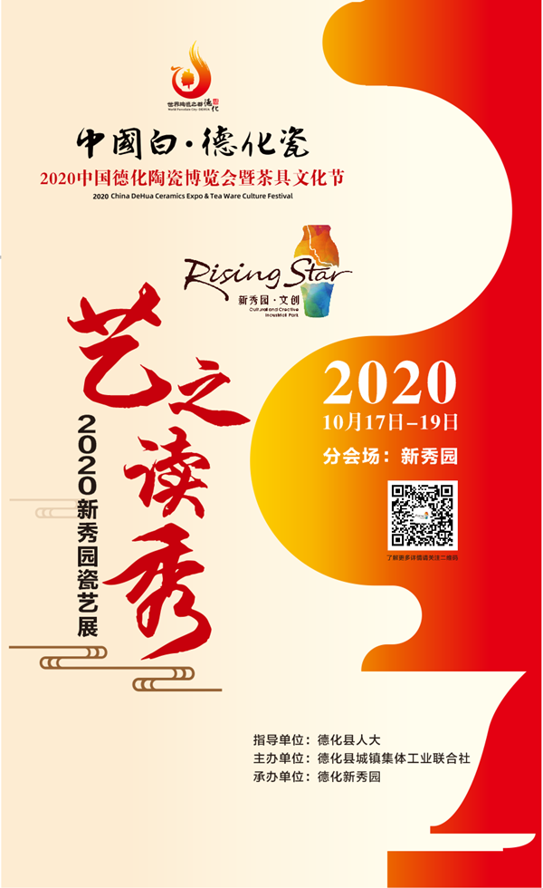 恰逢2020中国德化陶瓷博览会暨茶具文化节即将来临之际,园区特举办“艺之读秀”2020新秀瓷艺展;作为“一会一节”陶瓷文化馆分会场展示,让更多人在“赏艺、品瓷、读秀”的同时,更加关注和了解新秀园这一股瓷坛新秀新力量。