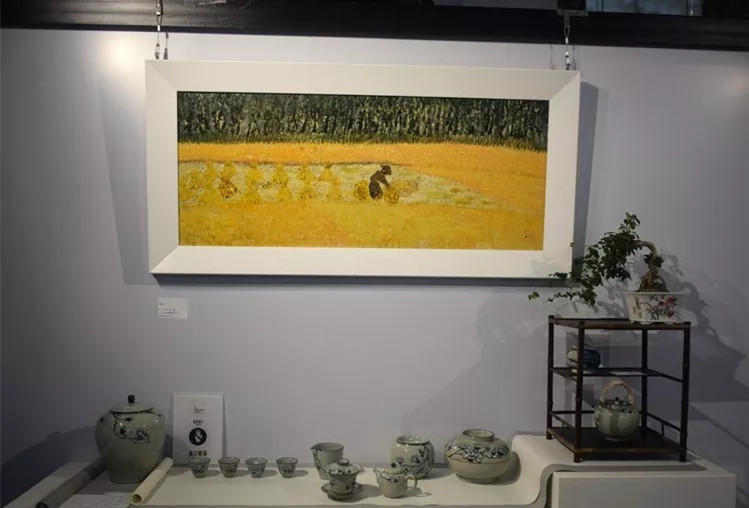 与第一回展览有所不同的是:本次展览的主角齐冬根是一位地道的农民,他从未经受过正统的美术教育,却画出一幅幅生动有趣的作品。《田园牧歌》、《晒秋》、《修茶园》、《古韵》、《思儿早归》、《一团合器》、《缠枝莲将军罐》、《似锦》、《荷趣》……展览现场,记者看到齐冬根创作的作品具有谜一般的梦幻色彩。那寥寥数笔勾勒出的女人形体,或扭曲、或变形、或臃肿的那寥寥数笔勾勒出的女人形体呈现出一种舒适随性的身体语言,令人耳目一新;“笨拙”的笔触,随意而狂乱的田园风景系列作品给人一种放荡不羁的感觉。同时展厅中遥窑生活器的生活器皿器型借鉴了传统纹饰但又不是完全照搬传统,纹饰更偏简洁;尤其是灰地青花瓷,与日常惯见的白地青花相比,有一种古拙趣味,令人倍感亲切。
