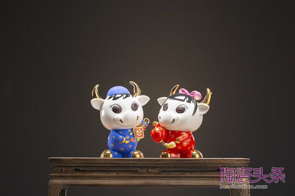 开拓牛、跨越牛、幸运牛、孺子牛……各式牛瓷摆件、茶宠、茶器等作品竞相绽放。它们造型不一,材质不一,各具特色,各有风采,是陶瓷艺术大师、新秀对当下疫情环境的独有思考与创新表达。全国陶瓷行业技术能手陈为坦设计的多款牛瓷作品更是将材质之美、工艺之精,以及设计的创新性展现得淋漓尽致。作品《犇犇和妞妞》一对可爱吉祥的牛娃摆件,就让人眼前一亮。
