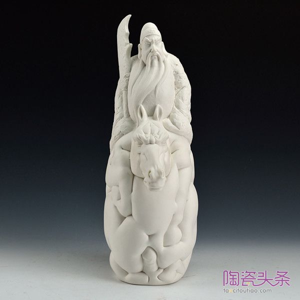 此外的《童子拜观音》、《吉祥如意》、《单刀凌云》等作品,也都让我们看到了一位极富自身艺术思想的赖瑞攀。其中作品《单刀凌云》,应用挤压式的表现手法,更是为我们开启了德化瓷雕作品表现方式的新大门。“我觉得人生的每一段经历都是自己未来的财富,如果没有我早前的外出工作和拜师求学经验,或许就不会有现在这么多样化的艺术思想。”赖瑞攀说。
