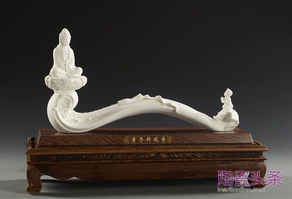 如他创作的作品《渡海观音》,大胆放弃了传统何派衣纹的构造手法,以一片简洁的荷叶塑身姿。大意简练的海浪设计,将简约的手法贯彻到底,精细传神的面部刻画,又让我们看到了赖瑞攀扎实的雕塑技艺,也让我们看到了有别于瓷圣何朝宗《渡海观音》的创作手法。“我就想在继承传统的基础,有所突破,有所创新,我希望自己的作品能带给别人新鲜感、独特感。这件作品在今年还荣获“中国(醴陵)国际陶瓷产业博览会”展品大赛金奖。”赖瑞攀介绍道。