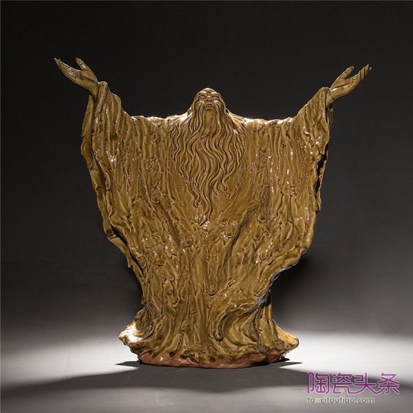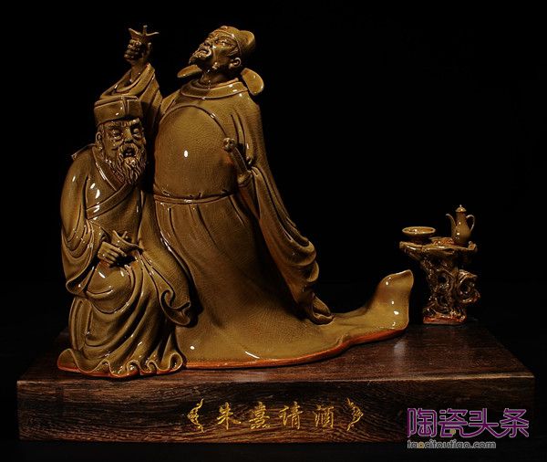 林荣献创作的瓷雕作品,也一直秉承着立足当代审美,借鉴传统文化元素,创作富有时代印迹的作品的精神。因而,他创作的许多传统文化人物瓷雕作品,在现代大写意与传统精工细作之间,交融应用,既有传统文化技艺的影子,又不失现代审美需求。《朱熹请酒》和《老子问天》这两件作品还被施于珠光青瓷釉水,营造出新的感官体验效果,与传统白瓷雕塑作品形成鲜明对比,妙趣无穷。