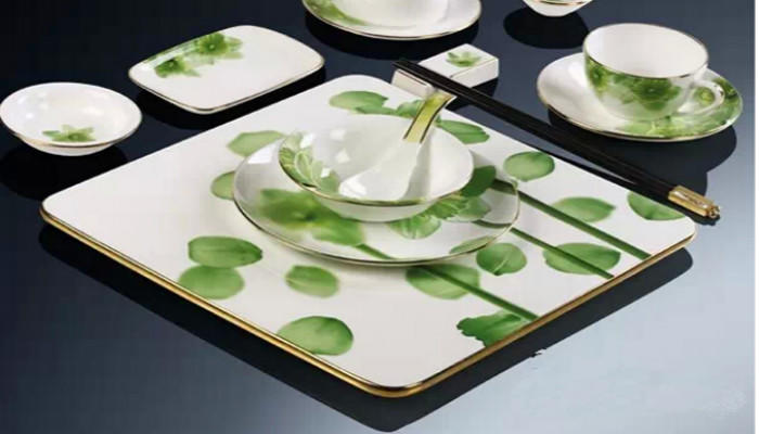 这一套艺术餐具的设计是同样以图案的艺术来表现的,嫩绿的色彩与餐具亮白色彩对应融合展现出小清新的餐具艺术。这样的艺术餐具在家用餐具中实用的较为广泛,很多家庭都喜欢选择这样淡雅清新的设计风格,让家庭用餐也淡雅起来了。