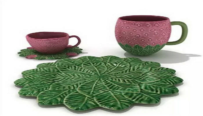 除了图案与家用餐具的融合艺术外,餐具造型的个性化设计也是艺术餐具的一种重要表现形式。仿真树叶型的这套餐具在造型上有了与普通餐具完全不同的艺术表现。翠绿的树叶餐具使得用餐仿佛也开始融入大自然,而杯子红绿撞色非常另类的呈现出一种个性的艺术美。