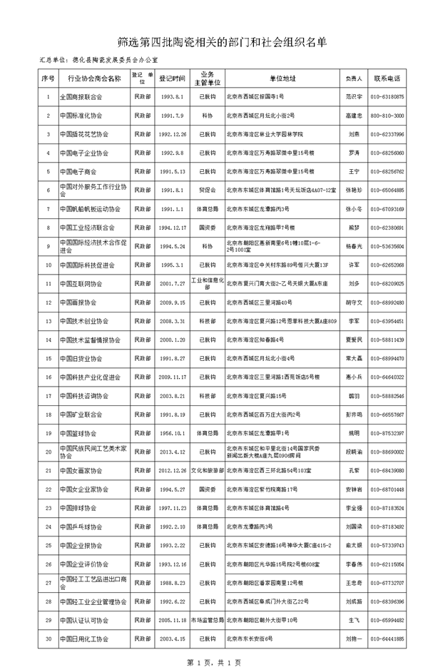 附件:筛选第四批陶瓷有关的部门和社会组织名单