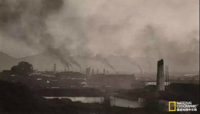 从高处俯瞰景德镇,上百座林立的高大烟囱喷吐着浓烟。