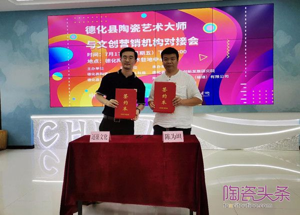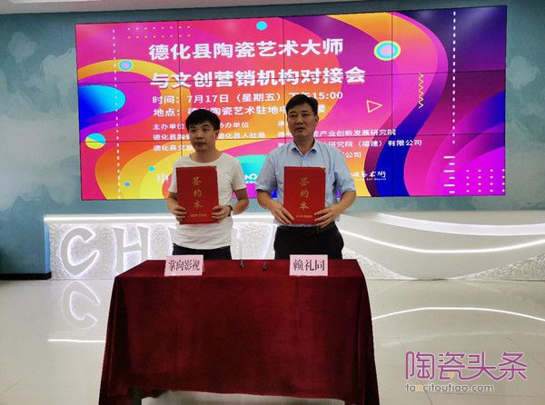 现场掌向影视、还巢文化分别与中国工艺美术大师赖礼同、福建省工艺美术大师陈为坦对接成功,并进行签约。此外,现场还举行了县陶瓷办与陶瓷艺术驻地中心入驻机构代表清正文化的签约仪式。