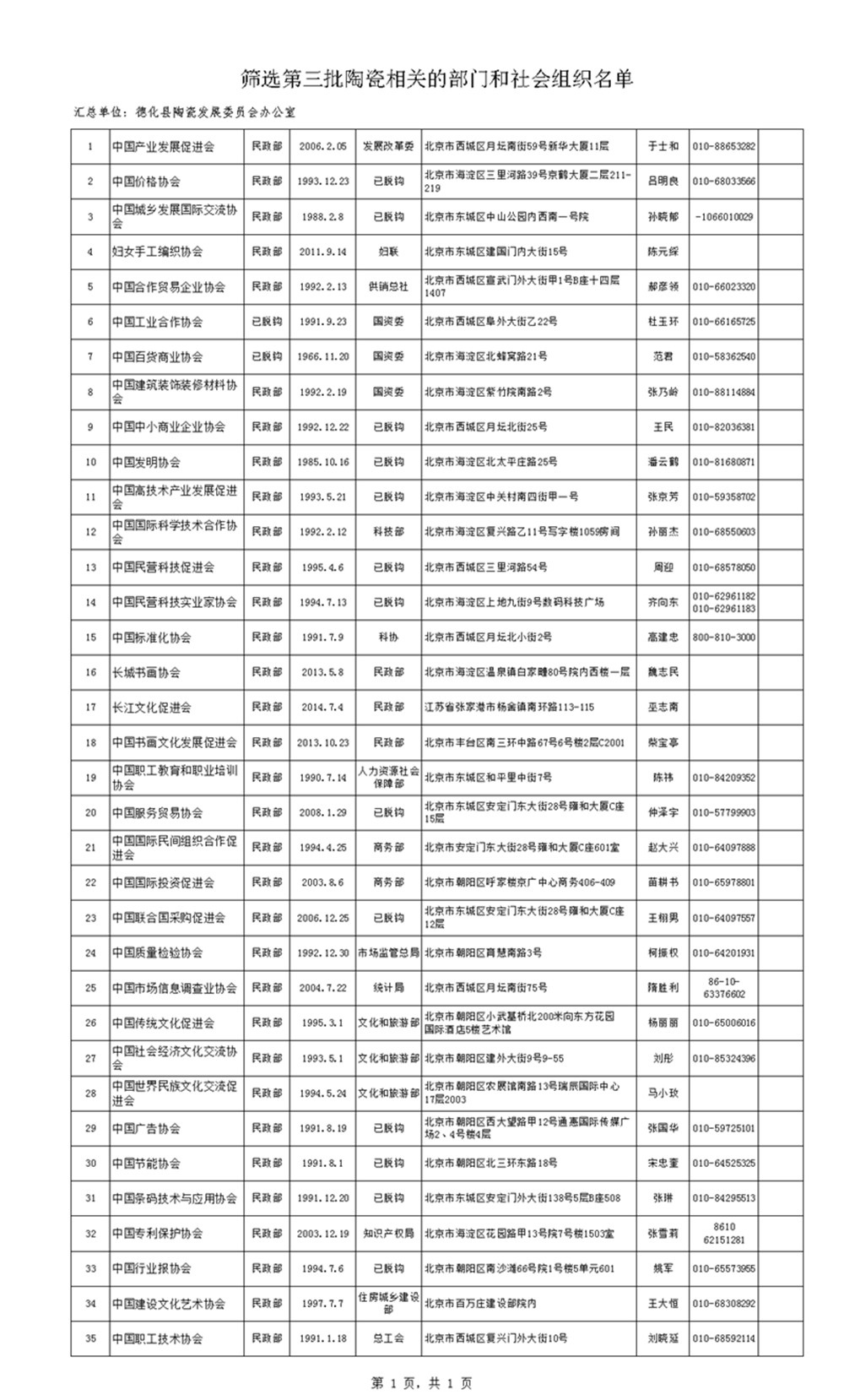 附件:筛选第三批陶瓷有关的部门和社会组织名单