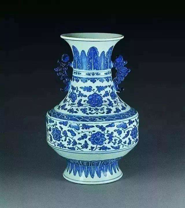 明宣德景德镇窑青花缠枝莲纹双耳瓶
