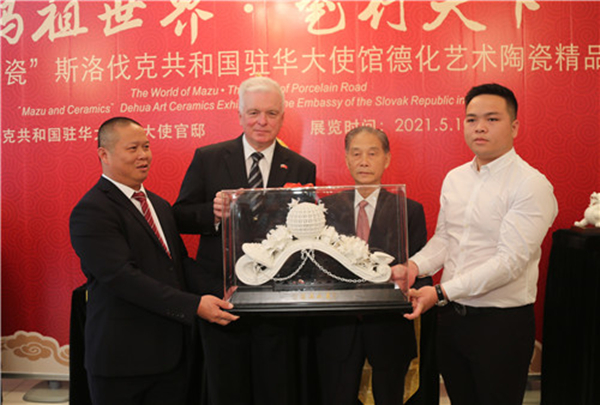 据悉:本次展览共展出各级工艺大师作品50余件,由斯洛伐克共和国驻华大使馆、中华妈祖文化交流协会支持,福建德化县陶瓷发展委员会联合主办,德化县陶瓷发展委员会办公室承办,德化县恒丰佳创有限公司执行。展览时间:5月10日-6月10日。