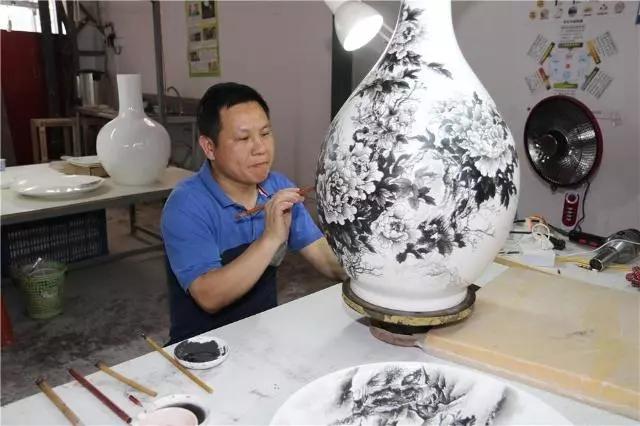 今年11月,怡丰园公司创作的手绘青花骨质瓷——《锦绣河山》,入选“大潮起珠江——广东改革开放40周年展览”,在深圳改革开放展览馆中展出。这件艺术品盆口径达101厘米,高度38厘米,厚度仅为6毫米,盆身青花釉面光滑透亮,手绘线条精细流畅,整个瓷器洁白细腻、光滑透亮,指尖轻轻一弹,一声轻脆的“咚”声,犹如悠悠钟声,受到参观者的广泛赞誉。黄建宏告诉记者,由于骨质瓷器制作过程中对各项理化指标均要求极高,瓷器越大,坯体的高度、厚度、口径等就越难控制,制作工艺难度大,成型率低,这件作品从坯体制作到彩绘再到烧制成功用了10多个月的时间。
