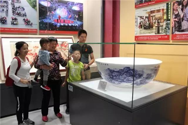 图为在深圳改革开放展览馆“大潮起珠江——广东改革开放40周年展览”中展出的手绘青花骨质瓷《锦绣河山》,吸引大量参观者。经济日报-中国经济网记者杨阳腾摄