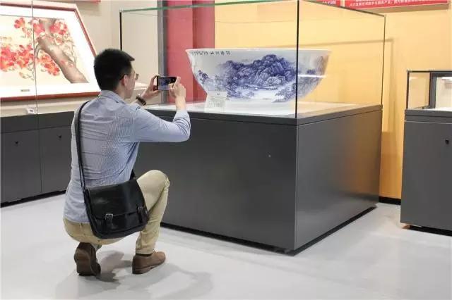 图为在深圳改革开放展览馆“大潮起珠江——广东改革开放40周年展览”中展出的手绘青花骨质瓷《锦绣河山》,受到参观者的广泛赞誉。经济日报-中国经济网记者杨阳腾摄
