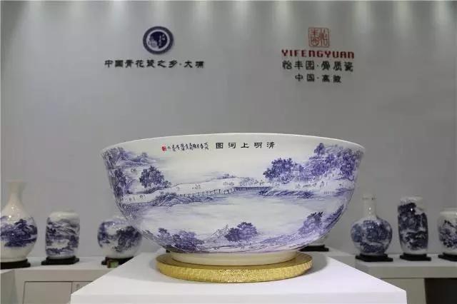 图为在第十四届文博会中荣获“中国工艺美术文化创意奖”金奖、由怡丰园公司精心烧制的全国最大的青花骨质瓷《清明上河图》。经济日报-中国经济网记者杨阳腾摄