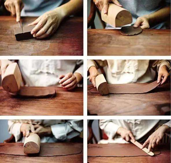 打泥条要打出中间与两头,上下需保持一致厚度。此基本功,初学者就得学三个月,需耐得住寂寞,有毅力,不怕苦。师傅只要听到木搭只声,就知道徒弟的规范程度。