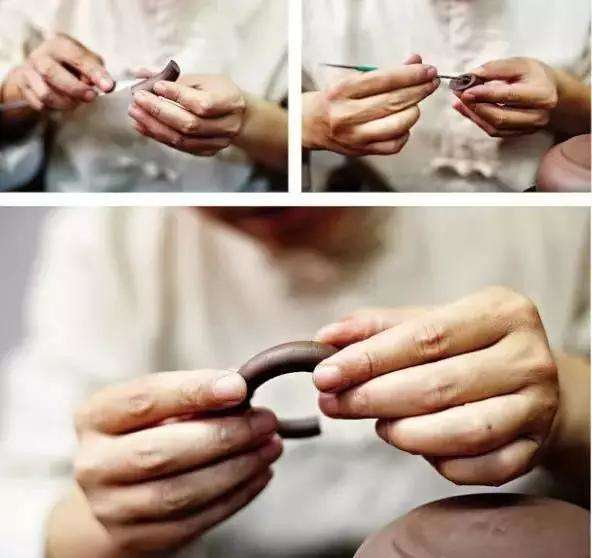 紫砂器成型的主要方法是手工捏作。手工成型的关键在于泥胚成型技巧的规范恰到好处及表面的精细加工。精细地刮平修正,可以使器形结构更加严谨,轮廓线条分明得体,筋囊文理清晰,达到珠圆玉润、浑然一体的制作要求。