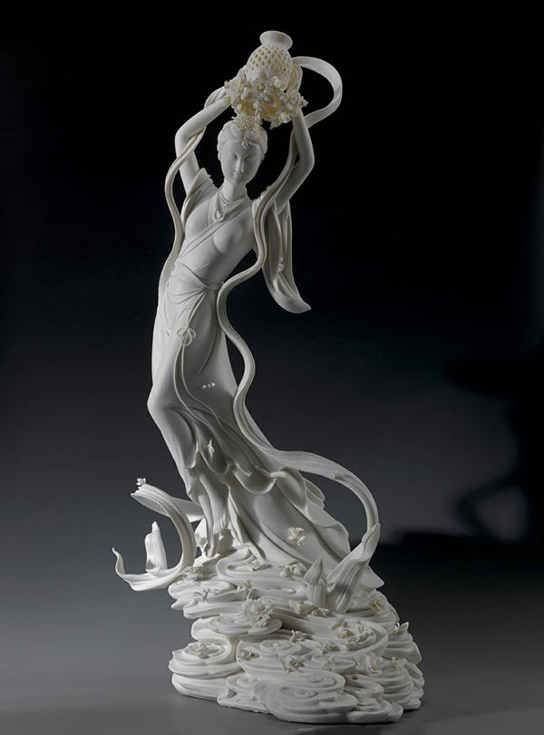 “建白瓷历来大多应用于瓷观音等瓷雕艺术瓷和花瓶、香炉等陈设瓷,德化是一个以雕塑而形成的瓷都产业,在世界上做瓷塑规模最大的就只有中国德化。”,中国陶瓷艺术大师、非物质文化遗产(德化瓷烧制技艺)国家级传承人许瑞峰介绍,明代是德化瓷业史上雕塑工艺最为兴旺的时期,民间的能工巧匠如何朝宗、张寿山、陈伟、林朝景等人,吸收泥塑木雕等传统技艺,师古而不泥古,善于应用瓷器胎釉的质感特点,精心烧制各种形象的道释人物,无论造型神态还是线条处理都刻划细腻、表现逼真,达到了高度的艺术水平。